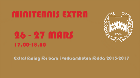Minitennis extra, för barn födda 2015-2017 som deltar i vår träningsverksamhet. 26-27 mars 17:00-18:00.